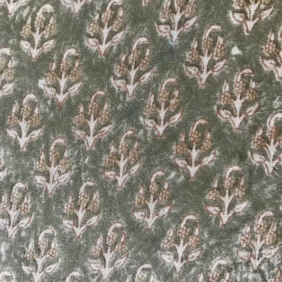 ผ้าฝ้ายพิมพ์ลายด้วยมือ – ลายดอกไม้เล็กๆ แบบบูติ | ผ้าทอสีเขียวเซจแบบอินเดีย