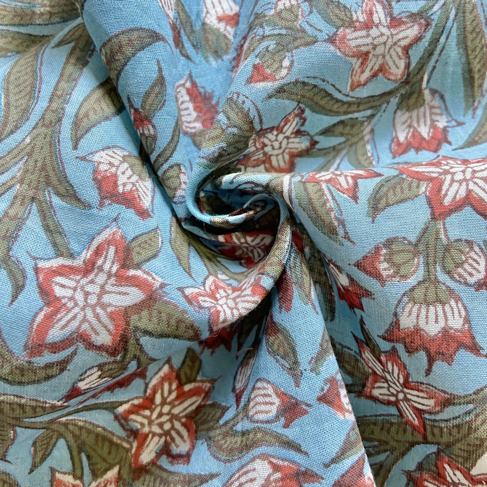 ผ้าฝ้ายพิมพ์ลายด้วยมือ ลายเถาวัลย์ดอกไม้ การพิมพ์ลายด้วยมือแบบดั้งเดิม