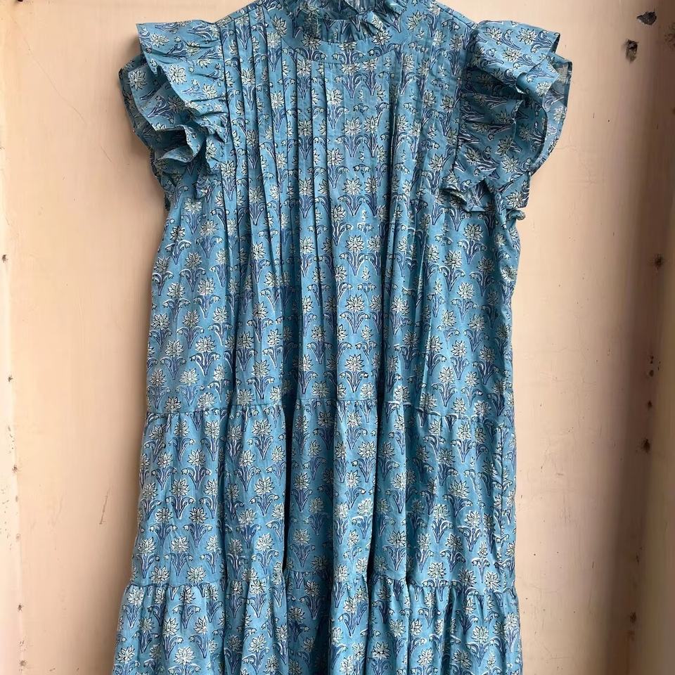 ชุดเดรสผ้าฝ้ายอินเดียแท้ 100% พิมพ์ลายด้วยมือ ผ้าก๊อซสไตล์โบฮีเมียนเก๋ไก๋ สวมใส่สบาย คอแบบผูก ไร้แขน ชุดเดรสสั้นสำหรับฤดูร้อน