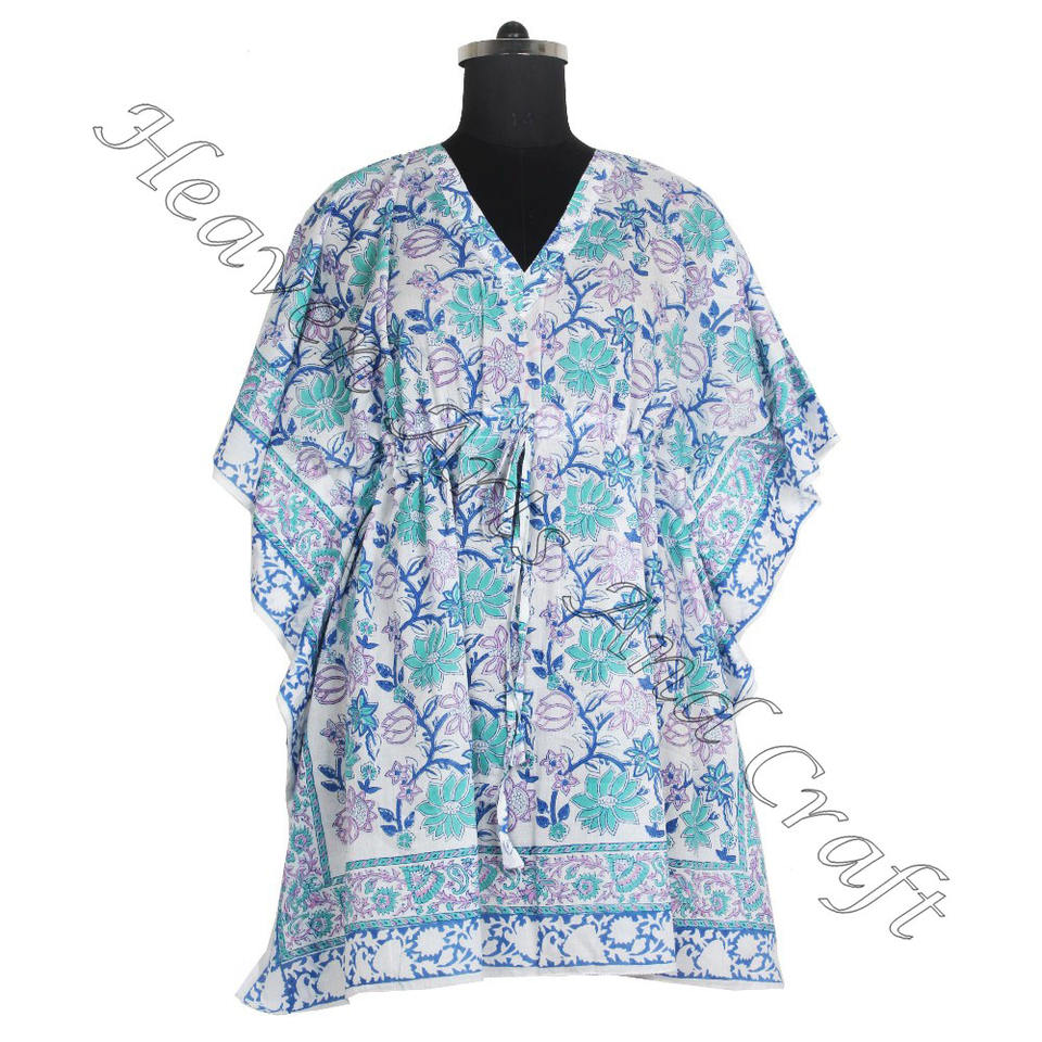 KFCS005คาฟตันผ้าฝ้ายพิมพ์ลายงานแฮนด์เมดสไตล์อินเดียคาฟตันดูไบแฟชั่นฮาลาบิยาพิมพ์สีตัดกัน