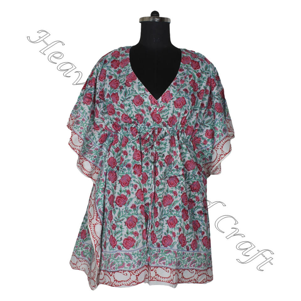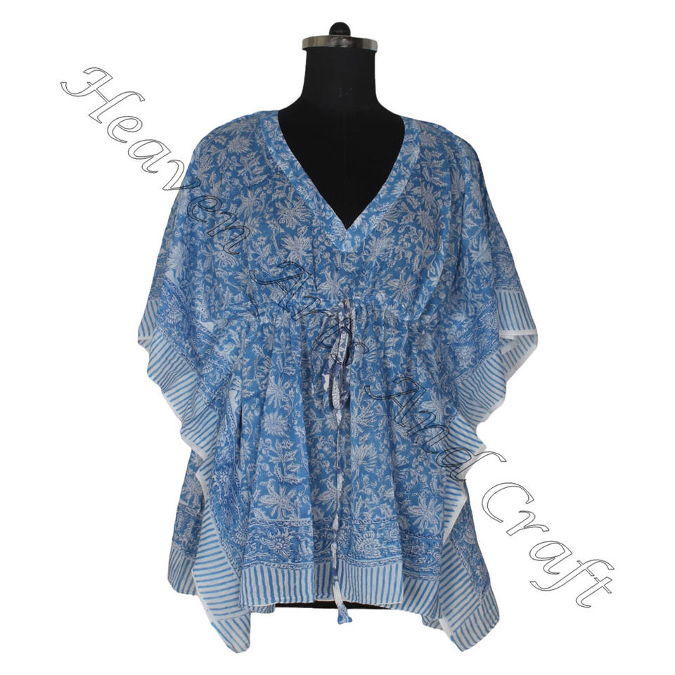 KFCS125คาฟตันผ้าฝ้ายพิมพ์ลายแฮนด์เมดสไตล์อินเดียคาฟตันทำมือสไตล์อาหรับคาฟตัน