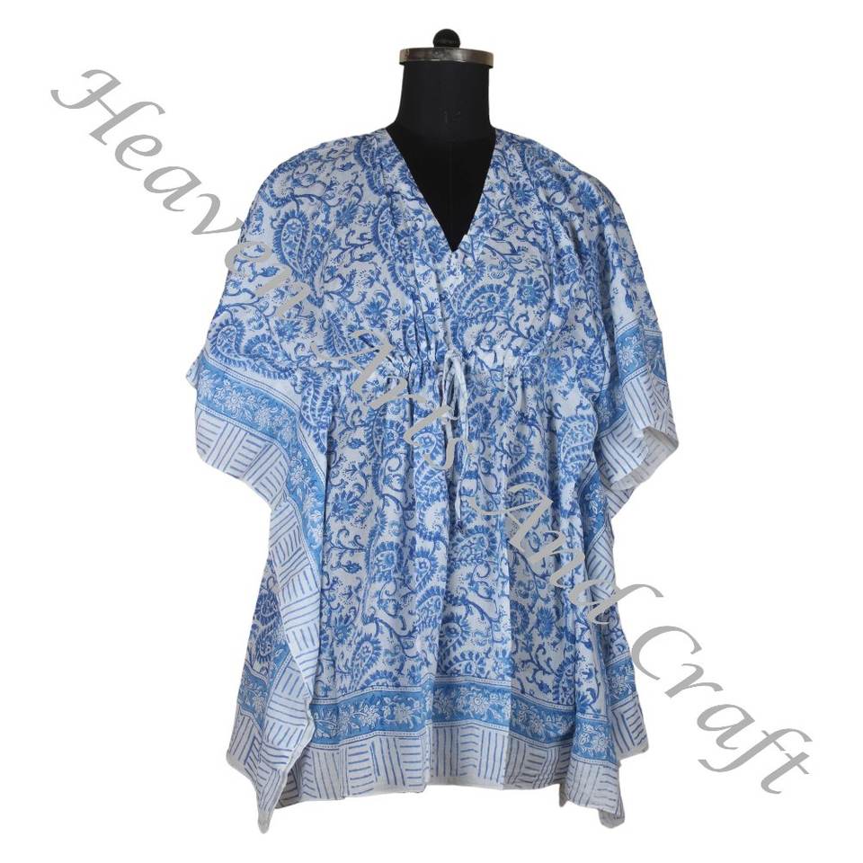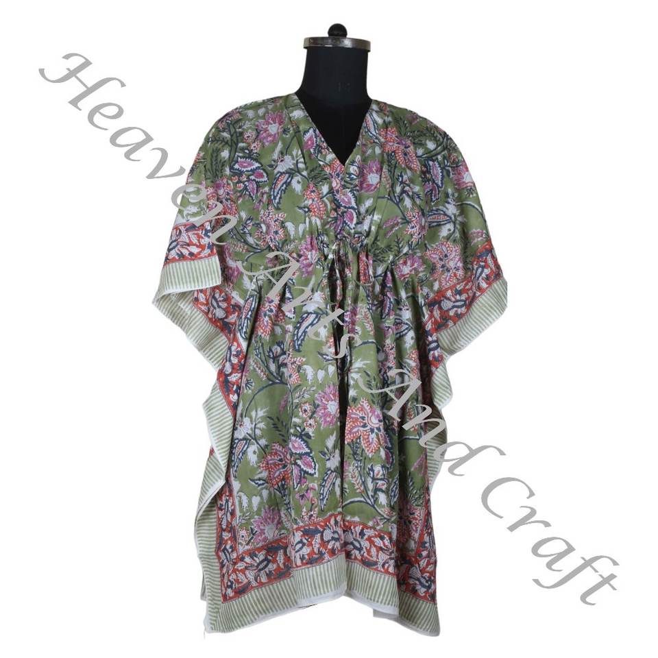 KFCS163คาฟตันผ้าฝ้ายพิมพ์ลายแฮนด์เมดสไตล์อินเดียคาฟตันทำมือสไตล์อาหรับคาฟตัน