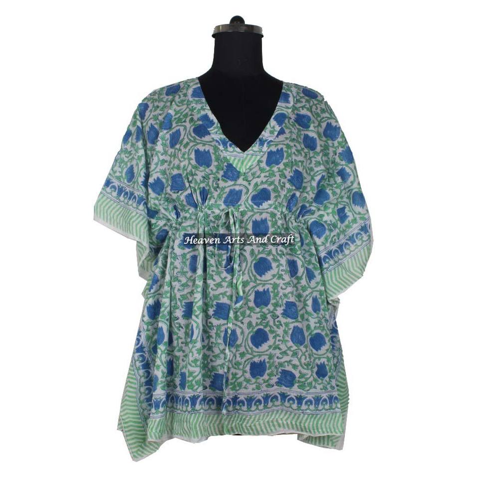 ชุดคาฟตันผ้าฝ้ายพิมพ์ลายด้วยมือ งานแฮนด์เมดสไตล์อินเดีย รุ่น KFCS031 ดีไซน์แม็กซี่ แขนสั้น ไซส์ XL สไตล์แฟชั่นดูไบ
