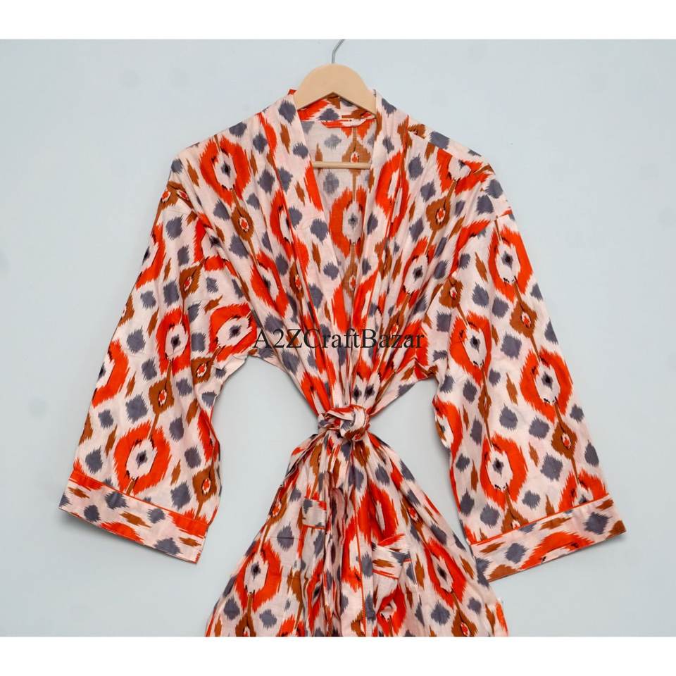 ชุดกิโมโนผ้าฝ้ายพิมพ์ลายด้วยมือแบบอินเดีย ลายดอกไม้ พร้อมเชือกผูก ปรับได้ ระบายอากาศได้ดี ใส่ได้ทุกฤดู