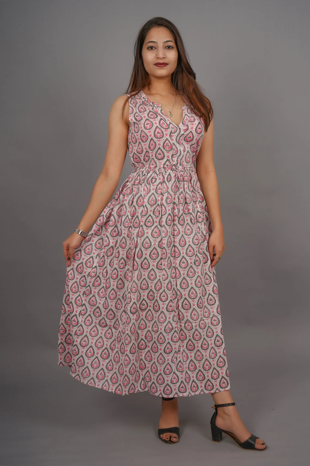 ชุดเดรสยาวผ้าฝ้ายพิมพ์ลายด้วยมือ ลายดอกไม้ สำหรับฤดูหนาวและฤดูใบไม้ร่วง ผลิตด้วยวิธีการทอแบบไม่ถักทอ