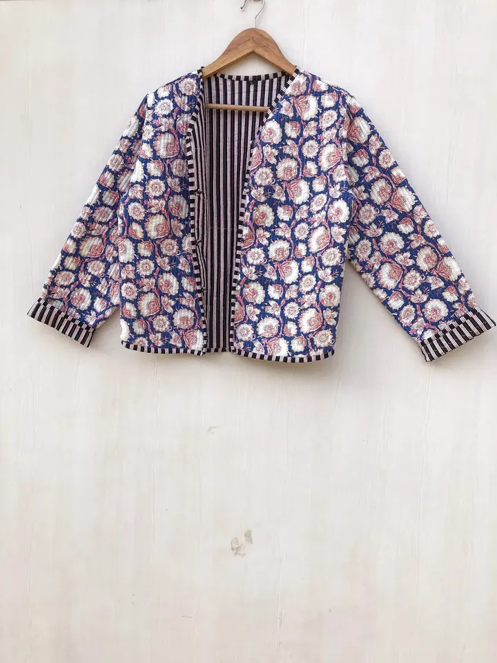 แจ็กเก็ตผ้าฝ้ายพิมพ์ลายประดับคริสตัลชุดใส่ประจำวันและชุดปาร์ตี้สำหรับแฟนไซส์ XL ความยาวสั้น
