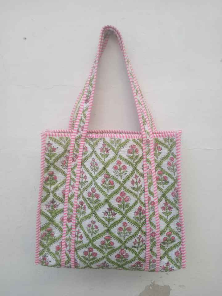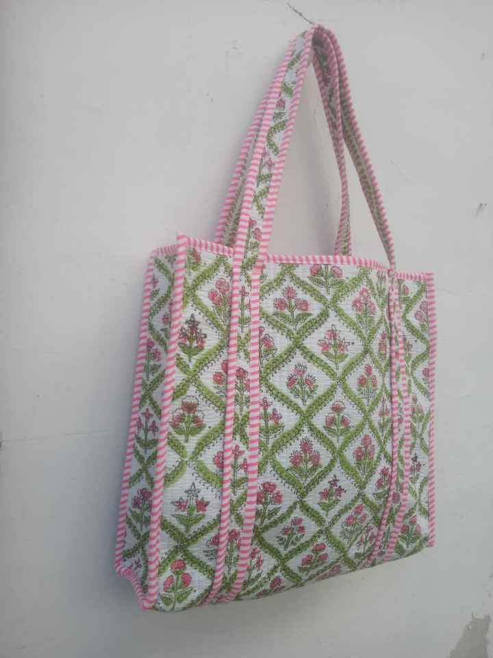 กระเป๋าผ้าควิลท์ผ้าฝ้ายพิมพ์ลายด้วยมือถุงช้อปปิ้งการตลาดแฟนซีพร้อมที่จับสำหรับเป็นของขวัญ