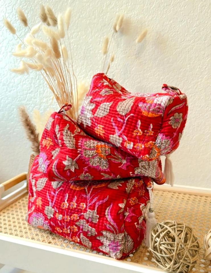 ผ้าฝ้ายพิมพ์ลายแบบวินเทจปรับแต่งได้เป็นมิตรต่อสิ่งแวดล้อมขนาดกลางสำหรับกล่องใส่เครื่องสำอางกันน้ำ