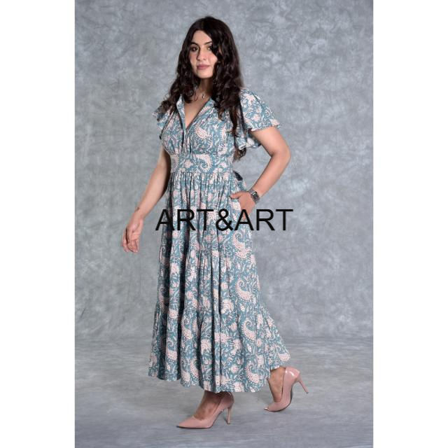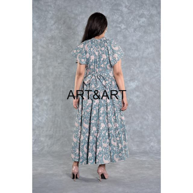 ชุดเดรสผ้าฝ้ายพิมพ์ลายด้วยมือสำหรับผู้หญิง ลายดอกไม้สไตล์อินเดีย สวมใส่สบาย เหมาะสำหรับงานปาร์ตี้ มีกระดุม
