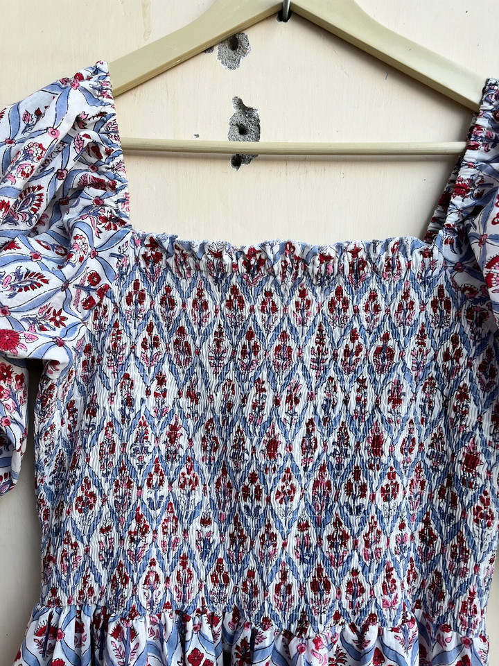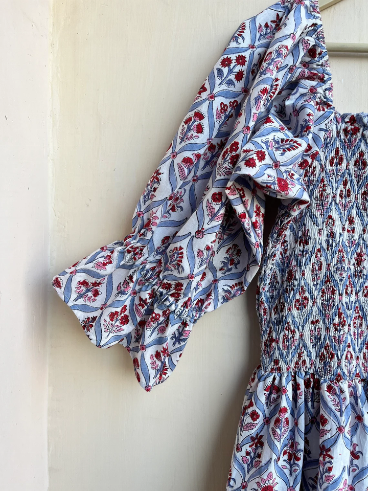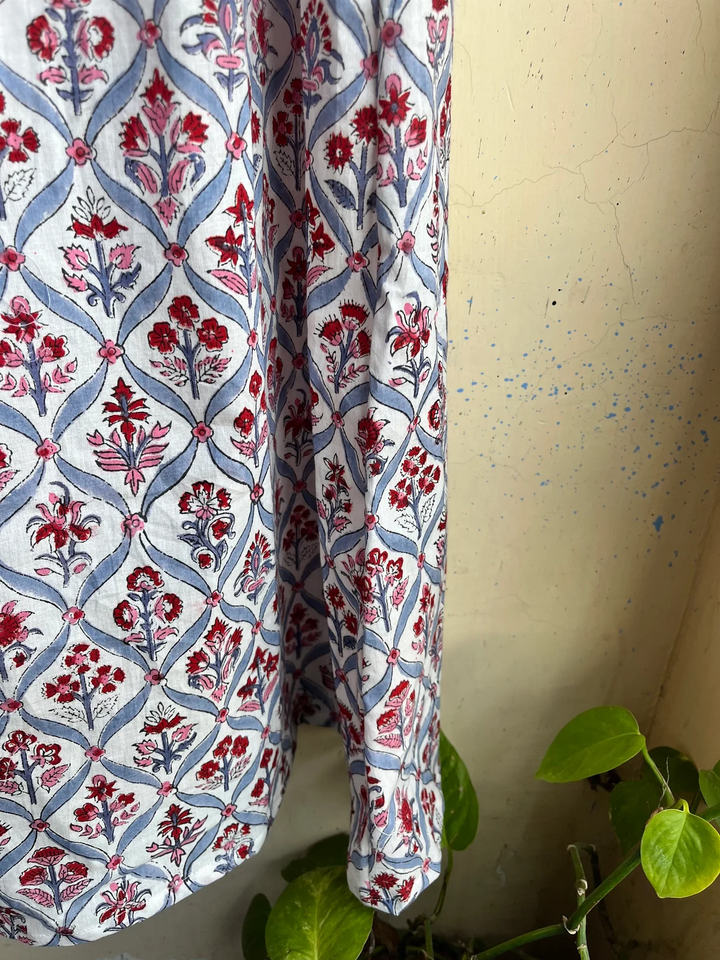 ชุดเดรสพิมพ์ลายด้วยมือ ผ้าฝ้ายอินเดีย คอเหลี่ยม แขนยาว ลายดอกไม้ ชุดลำลอง ชุดเดรสยาวสำหรับผู้หญิง