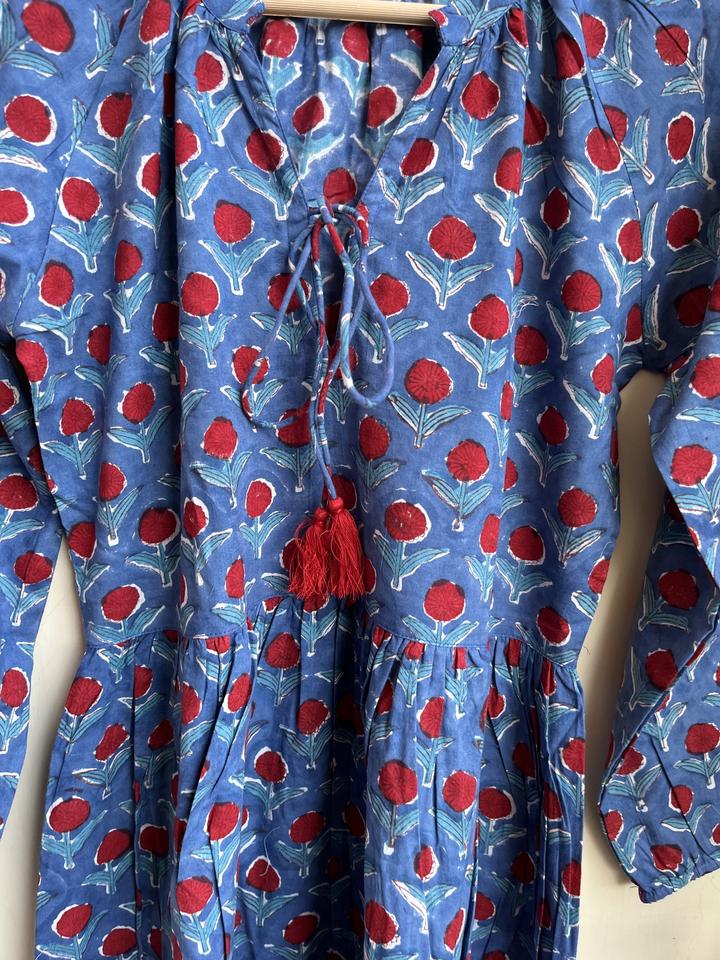 ชุดเดรสพิมพ์ลายแขนยาวทำจากผ้าฝ้ายอินเดียเดรสแขนยาว