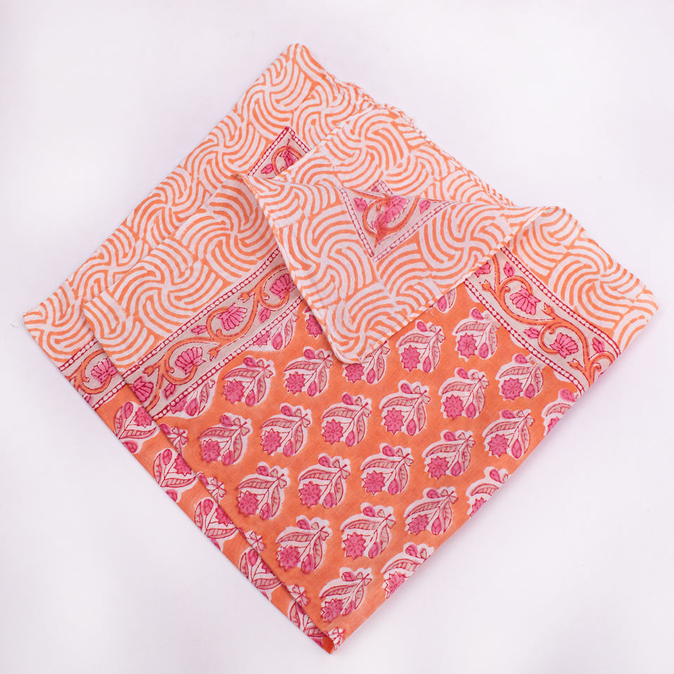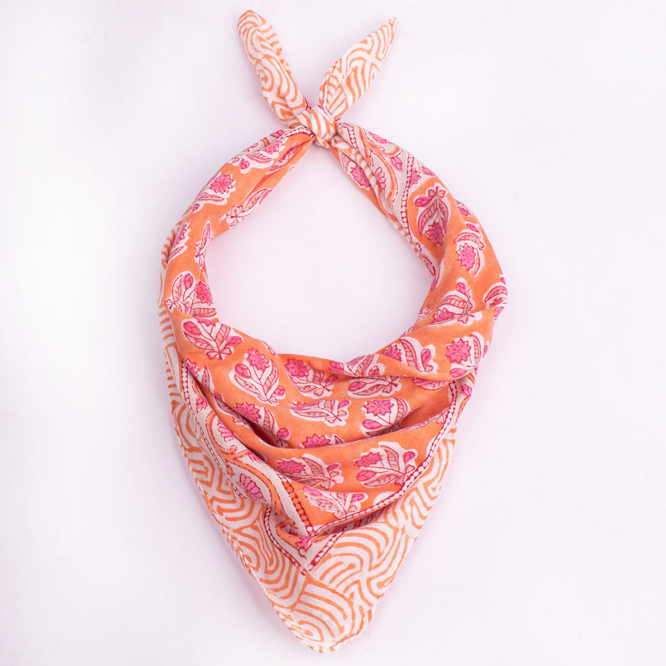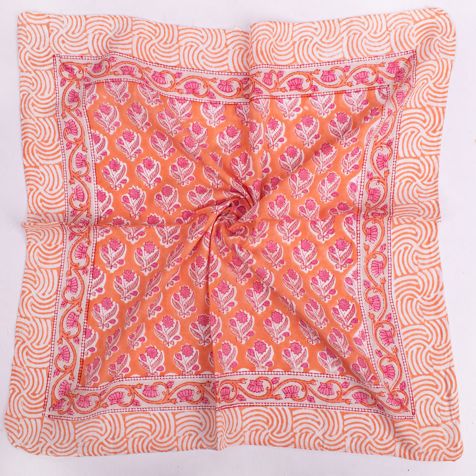 ผ้าพันคอผ้าฝ้ายพิมพ์ลายดอกไม้ด้วยมือ รูปทรงสี่เหลี่ยมจัตุรัส เป็นมิตรกับสิ่งแวดล้อม นุ่ม ระบายอากาศได้ดี ผูกด้านหลัง ใช้กลางแจ้ง ซักได้ ขนาด 21x21