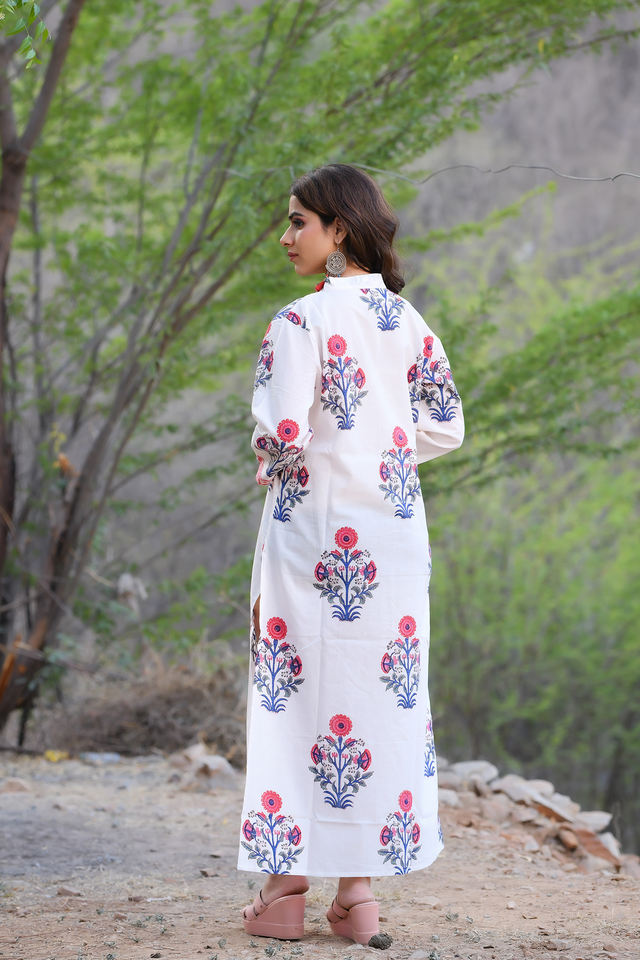 ชุดแมกซี่เดรสยาวผ้าฝ้ายพิมพ์ลายดอกไม้, ชุดเดรส100% ยาวสไตล์เรียบง่ายแนวโบฮีเมียนเดรสพิมพ์ลายบล็อกด้วยมือ