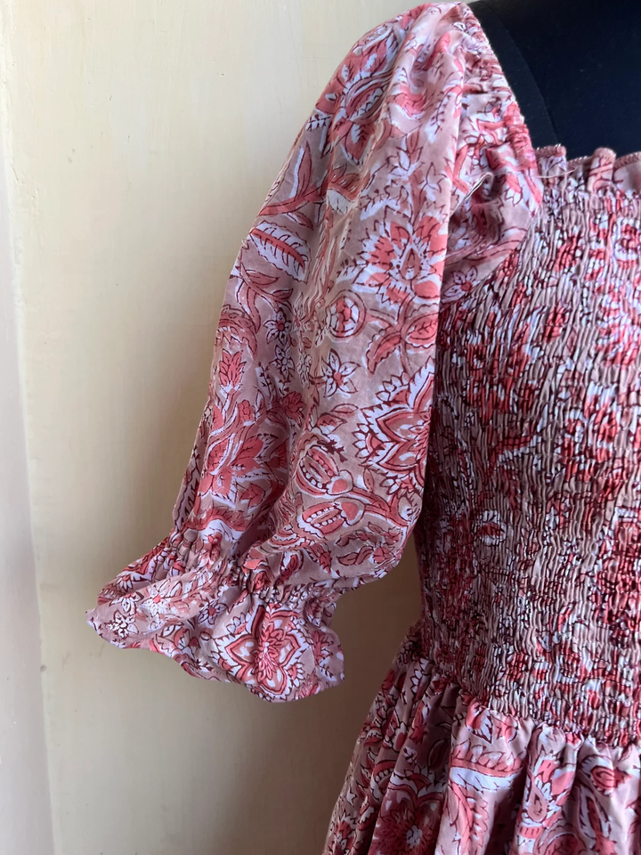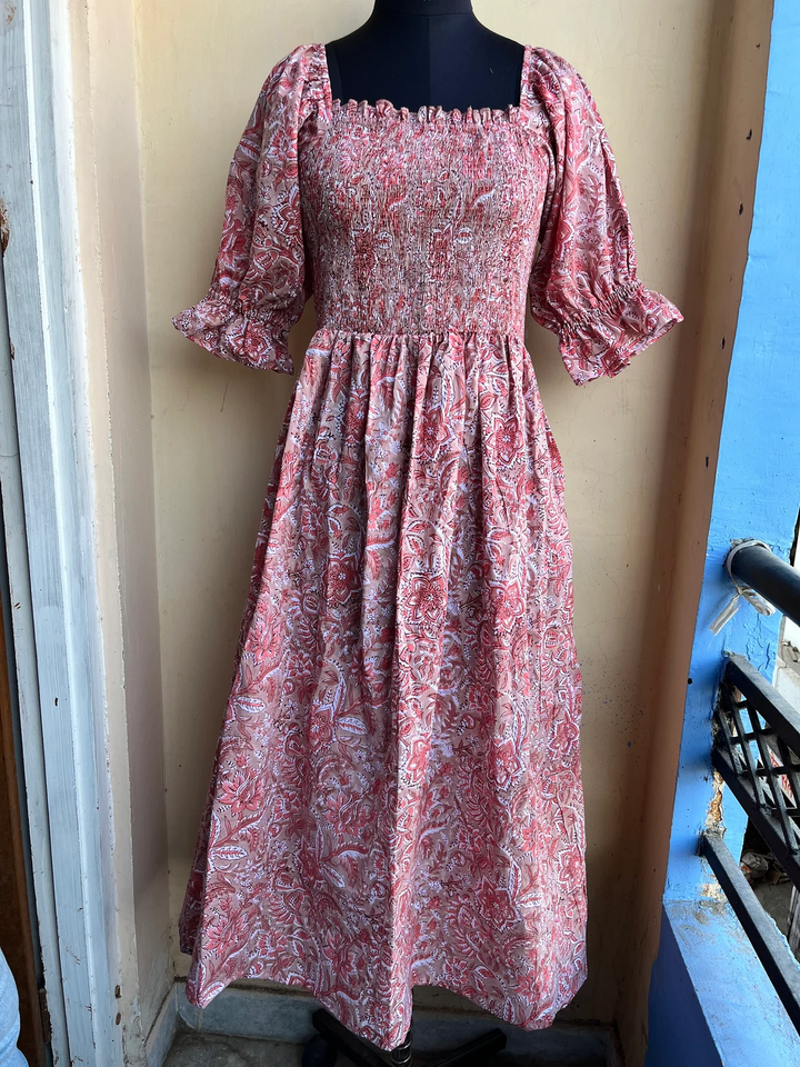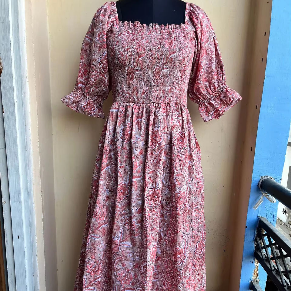 เดรสผ้าคอตตอนสไตล์อินเดียปักลายสไตล์อินเดียเดรสผ้าฝ้าย100% ปกสี่เหลี่ยมสไตล์อินเดีย
