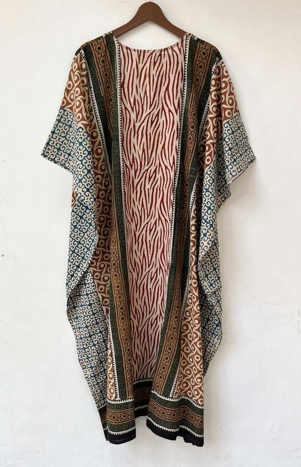 ชุดเดรสยาวผ้าฝ้ายอินเดียพิมพ์ลายด้วยมือ สไตล์โบฮีเมียน เหมาะสำหรับใส่ไปชายหาดหรือเป็นชุดนอน