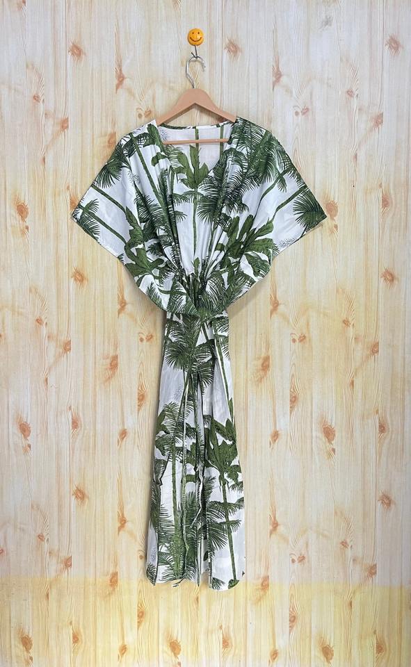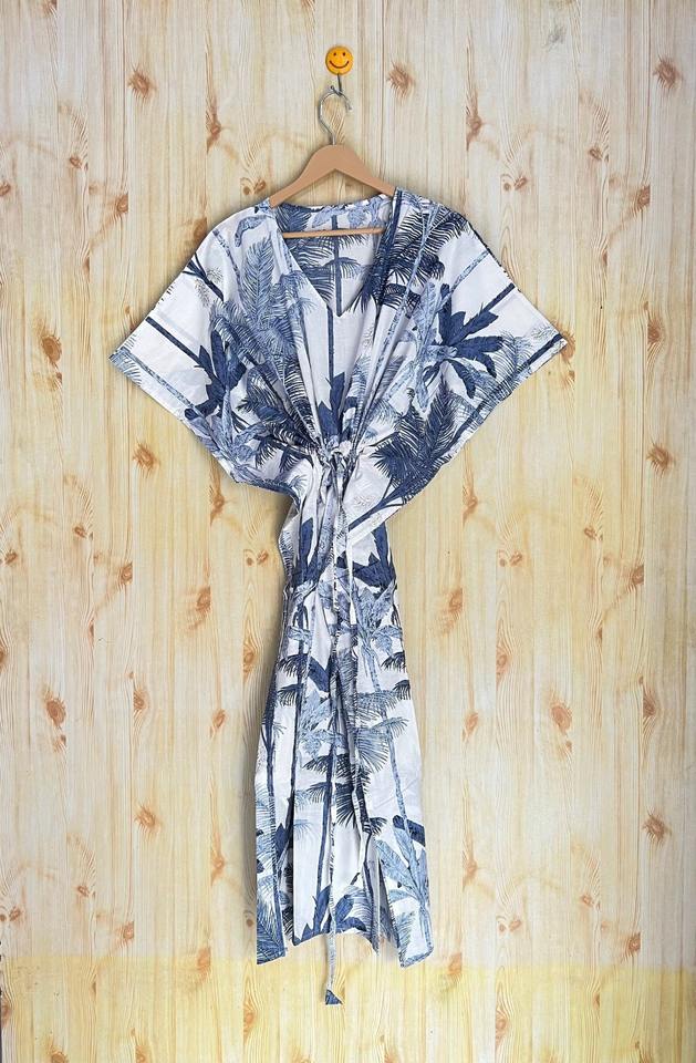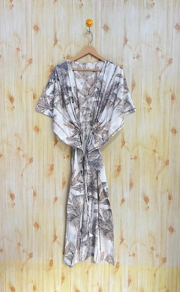 ชุดคลุมผ้าฝ้ายพิมพ์ลาย Kaftan ชุดคลุมชายหาดทำด้วยมือสำหรับฤดูร้อน