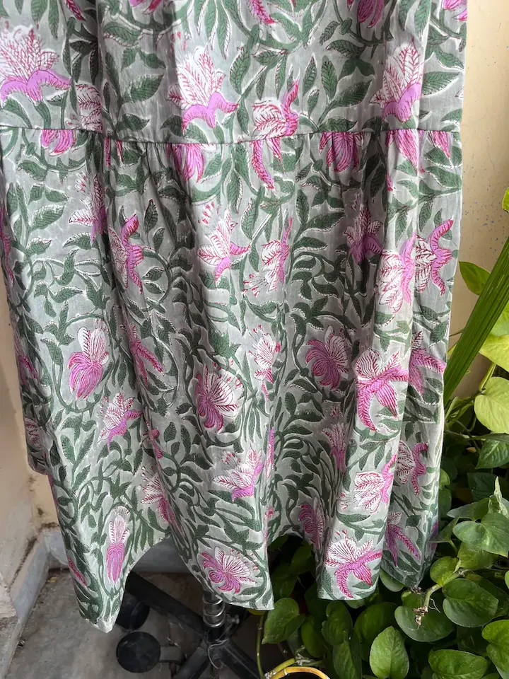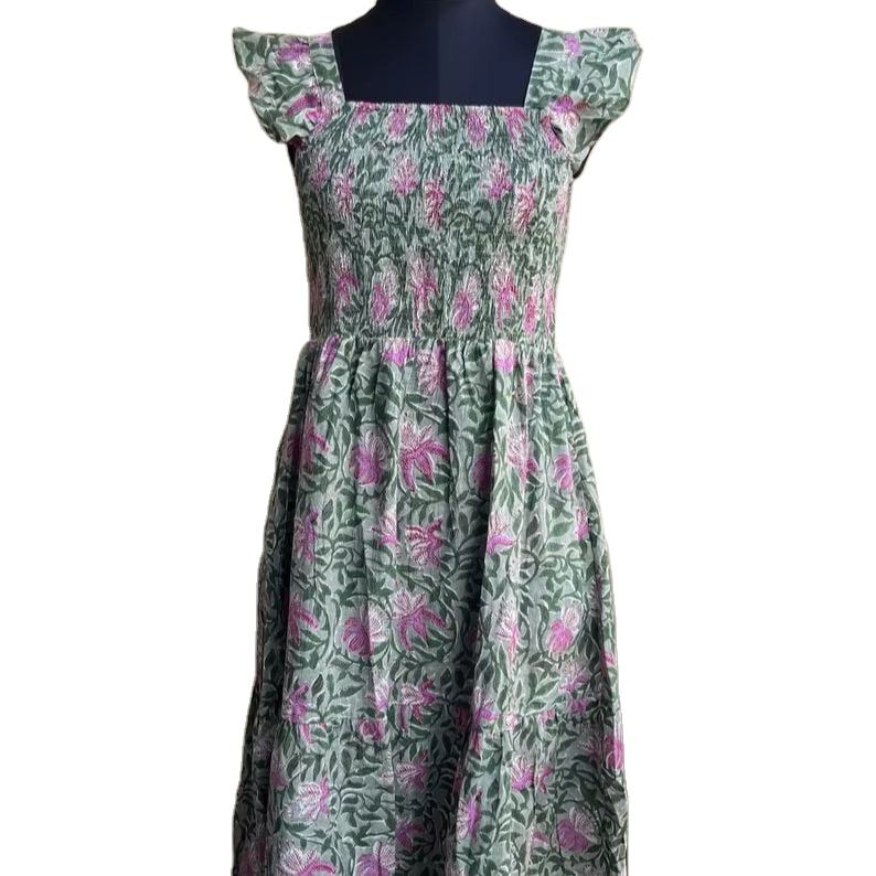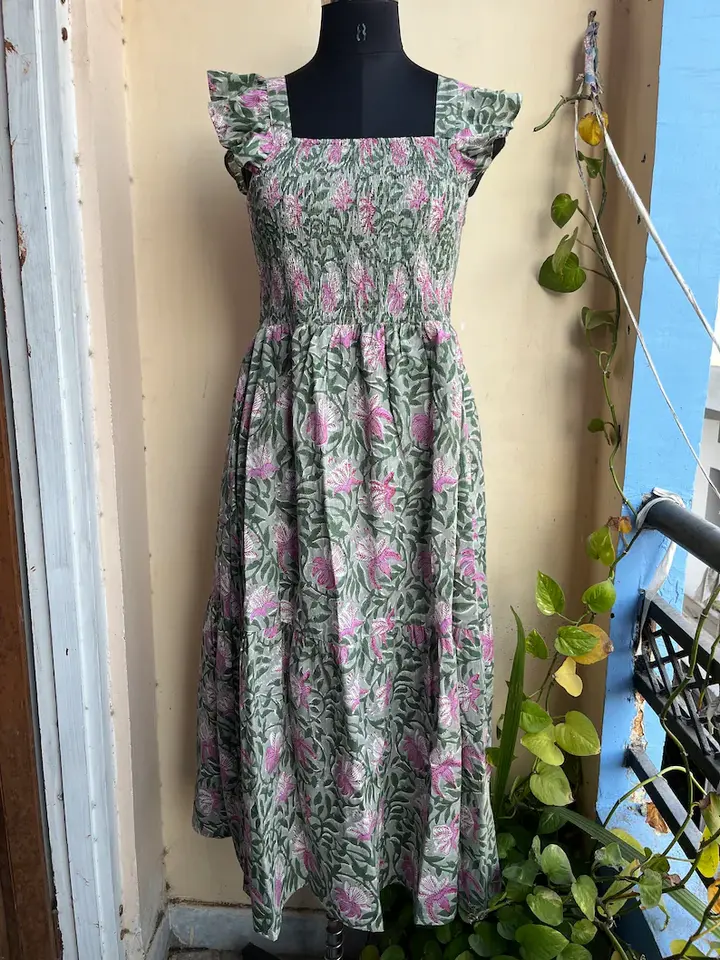 ชุดราตรียาวคอตตอนพิมพ์ลายดอกไม้, เดรสแขนกุดปรับได้สไตล์ลำลอง