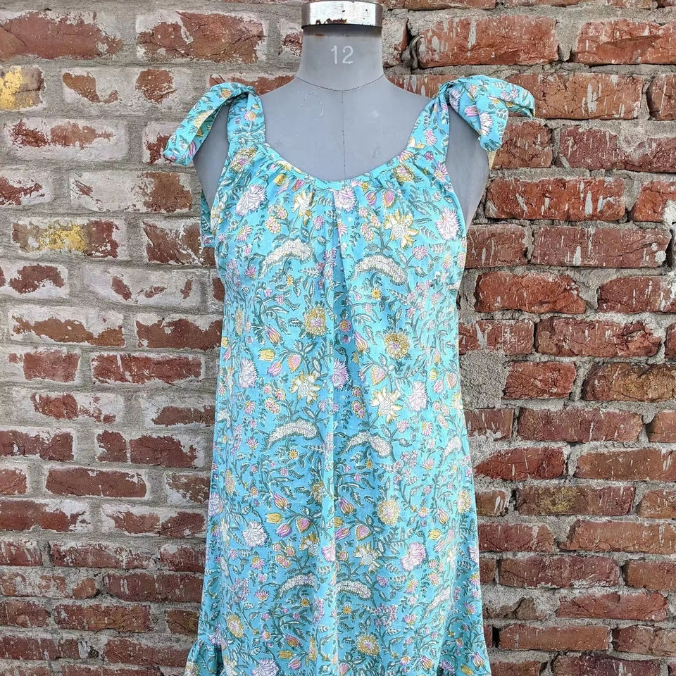 ชุดเดรสยาวคอตตอนพิมพ์ลายทำจากผ้าคอตตอนสไตล์อินเดียคอเสื้อระบายอากาศได้ดีเทคนิคการทอผ้ามัดย้อมเอวธรรมชาติ