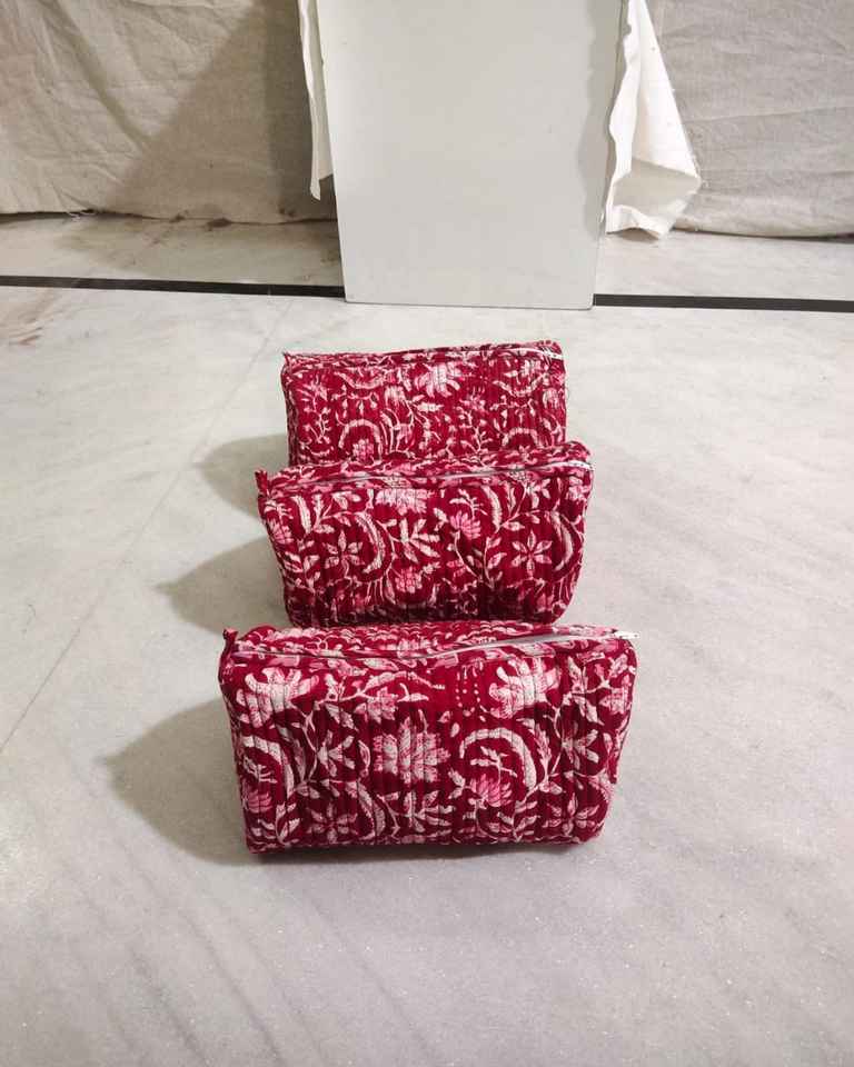 ชุดกระเป๋าเครื่องสำอางสำหรับผู้หญิงกระเป๋าผ้าคอตตอนพิมพ์ลายดอกไม้มีซิปปิด