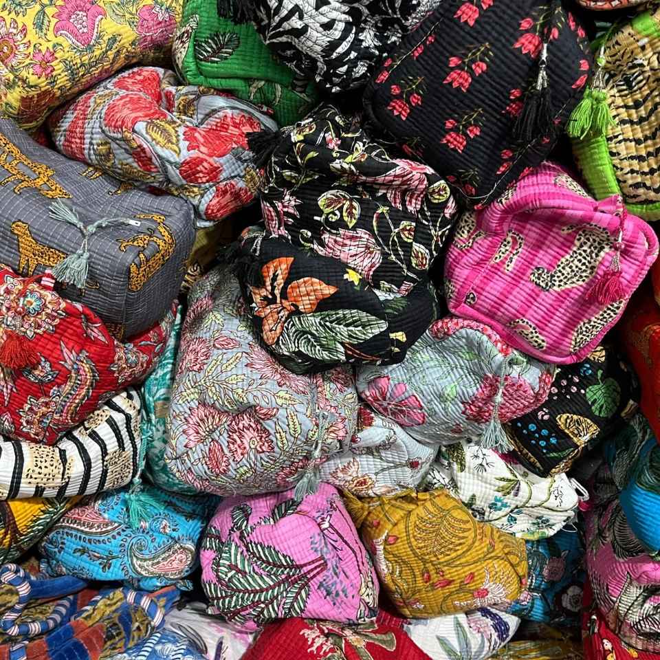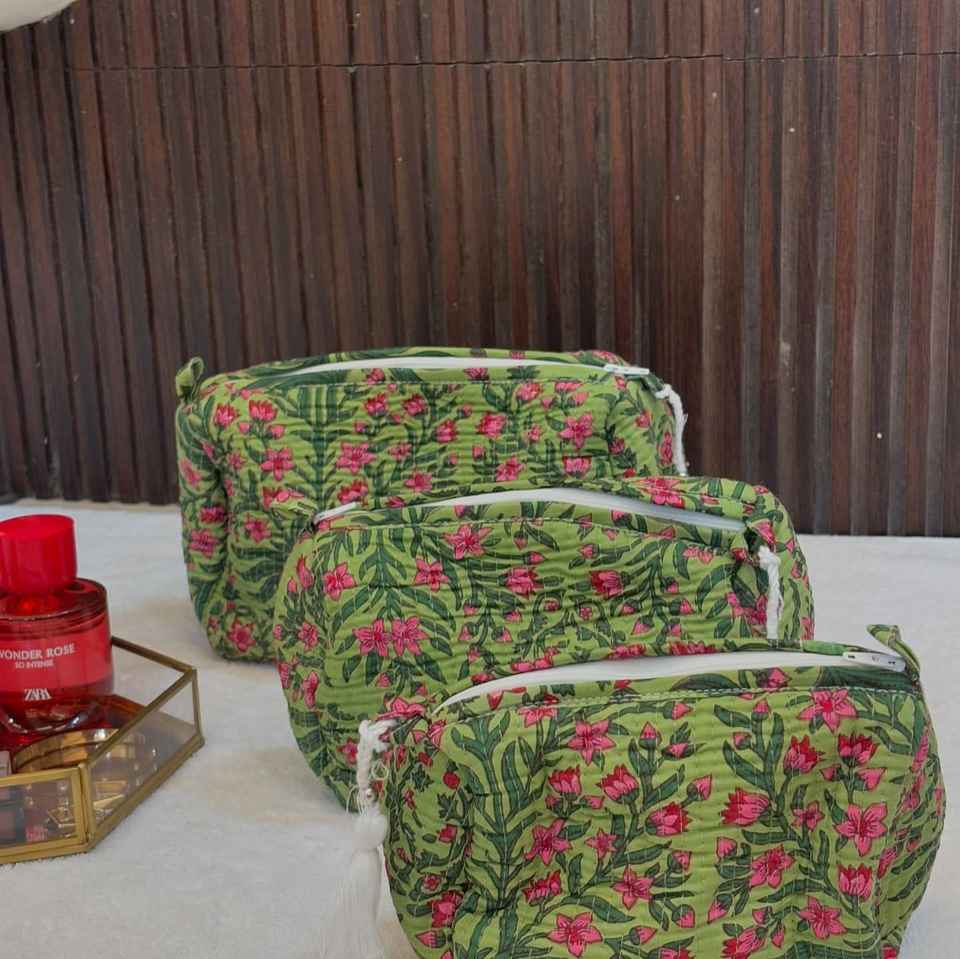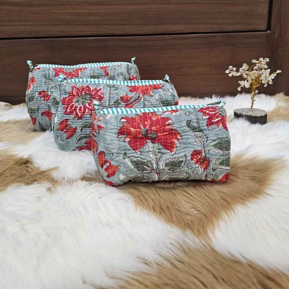 กระเป๋าใส่เครื่องสำอางแบบเย็บปักถักร้อยลายดอกไม้พิมพ์ลายด้วยมือพร้อมซิปปิด ทำจากผ้าฝ้ายสำหรับผู้หญิง ชุดกระเป๋าเครื่องสำอาง