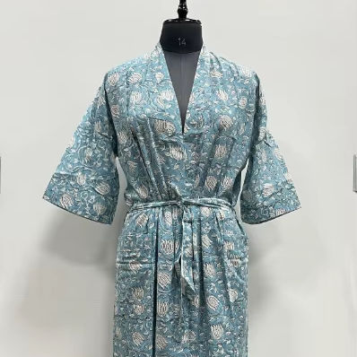 Hand Block Printed Summer Bohemian Kimono Robe Loungewear 100% Cotton Soft Trending Home Wear Christmas Gift