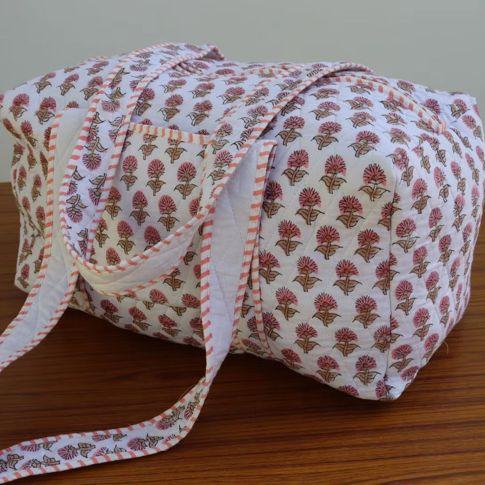 กระเป๋าผ้าดัฟเฟิลพิมพ์ลายด้วยมือสุดหรู สไตล์ลำลอง ผลิตจากผ้าฝ้าย ทนทาน ขนาดใหญ่ ใส่ของได้เยอะ มีซิปปิด เหมาะสำหรับวันหยุดสุดสัปดาห์ รุ่น 2026