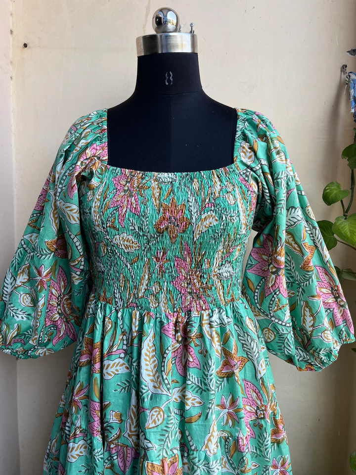 เดรสยาวพิมพ์ลายด้วยมือสไตล์อินเดีย ผ้าฝ้ายลำลอง ปักลายดอกไม้ ชุดยาวสำหรับผู้หญิง ของขวัญสำหรับเธอ
