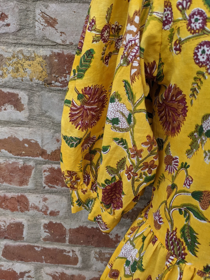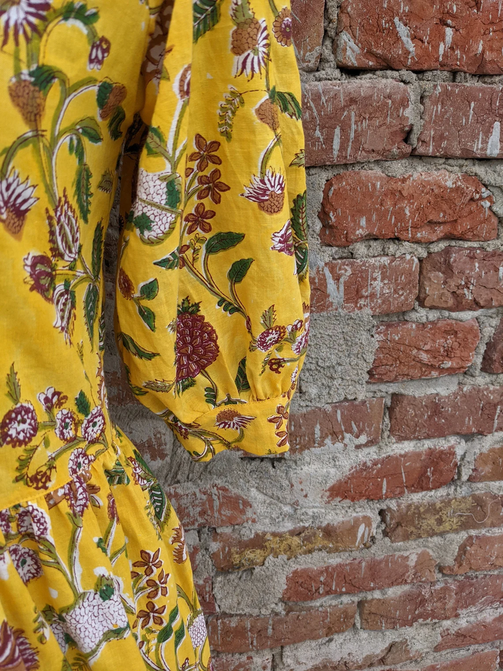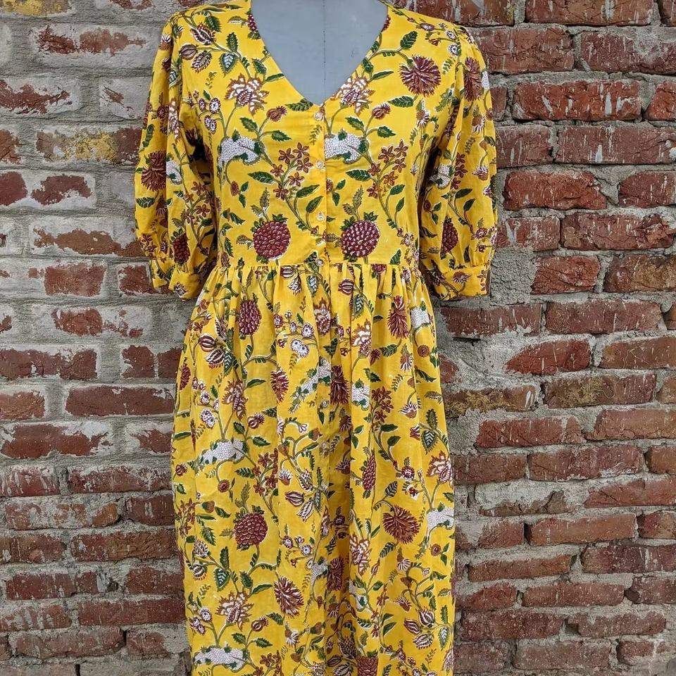 เดรสแมกซี่พิมพ์ลายดอกไม้แบบลำลองสำหรับฤดูร้อนเดรสผ้าคอตตอนอินเดียทนทานและเป็นมิตรกับสิ่งแวดล้อม
