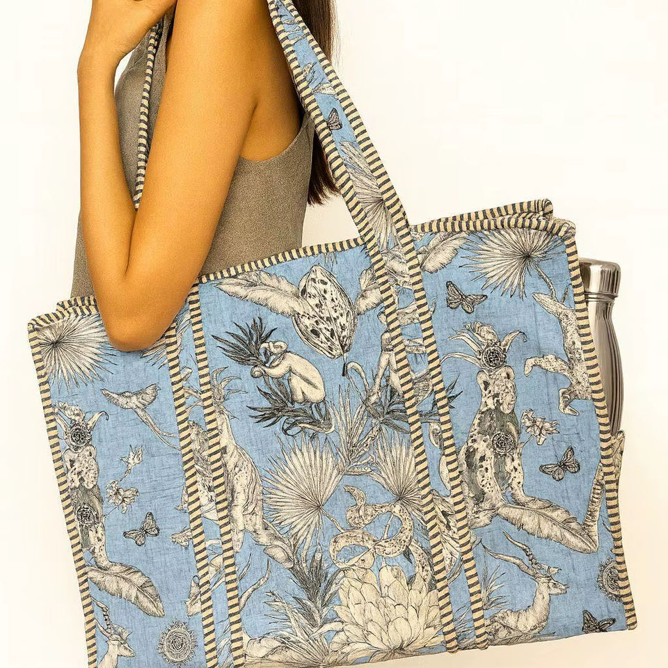 กระเป๋าสะพายไหล่สไตล์อินเดียสำหรับผู้หญิงทำมือลายผสมผ้าฝ้ายพิมพ์ลายขวางเป็นมิตรกับสิ่งแวดล้อม