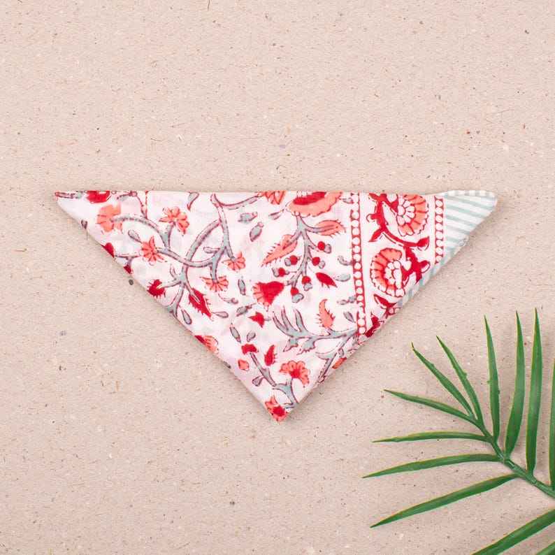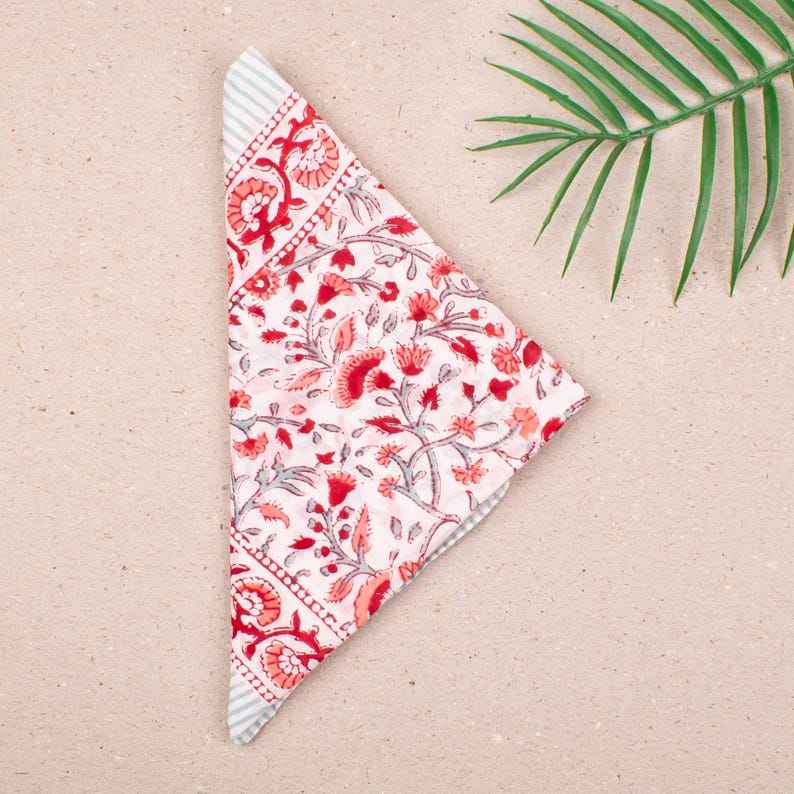 Hand Block Printed Red Cotton Bandana Lightweight Summer Hair Wrap Beach Gift