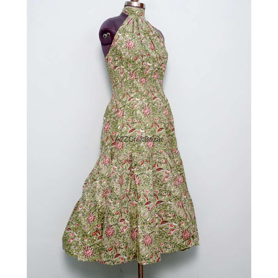 ชุดเดรสผ้าฝ้ายพิมพ์ลายดอกไม้ด้วยมือ ชุดเดรสยาวสำหรับฤดูร้อน พิมพ์ลายดอกไม้ทำมือ ชุดเดรสยาวสำหรับงานปาร์ตี้สำหรับผู้หญิง