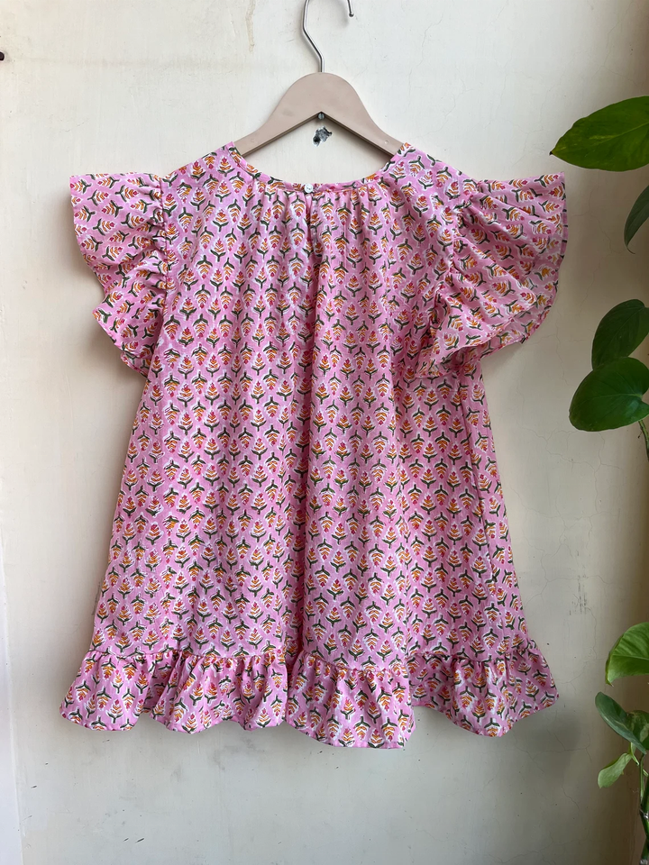 เสื้อผ้าฝ้ายพิมพ์ลายด้วยมือสำหรับฤดูร้อน เสื้อผู้หญิงทำมือ ลายดอกไม้ แขนสั้น เหมาะเป็นของขวัญสำหรับเธอ