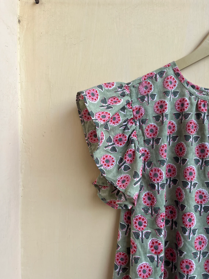 เสื้อเบลาส์พิมพ์ลายดอกไม้สำหรับผู้หญิงเสื้อท่อนบนผ้าฝ้ายลายดอกไม้ลำลองสำหรับฤดูร้อนปักลายทำด้วยมือ
