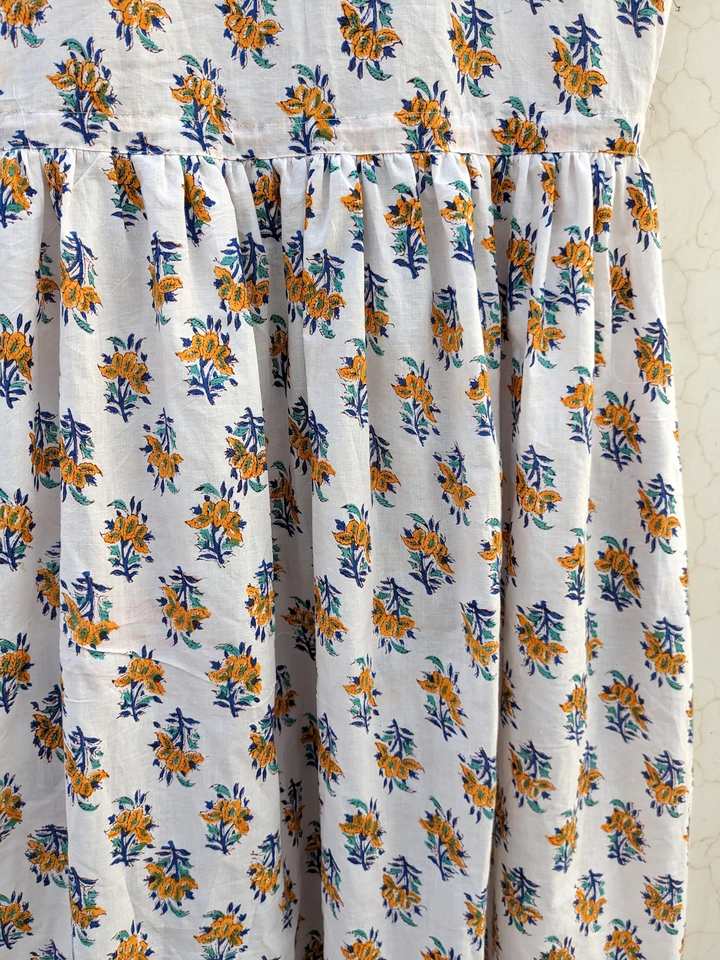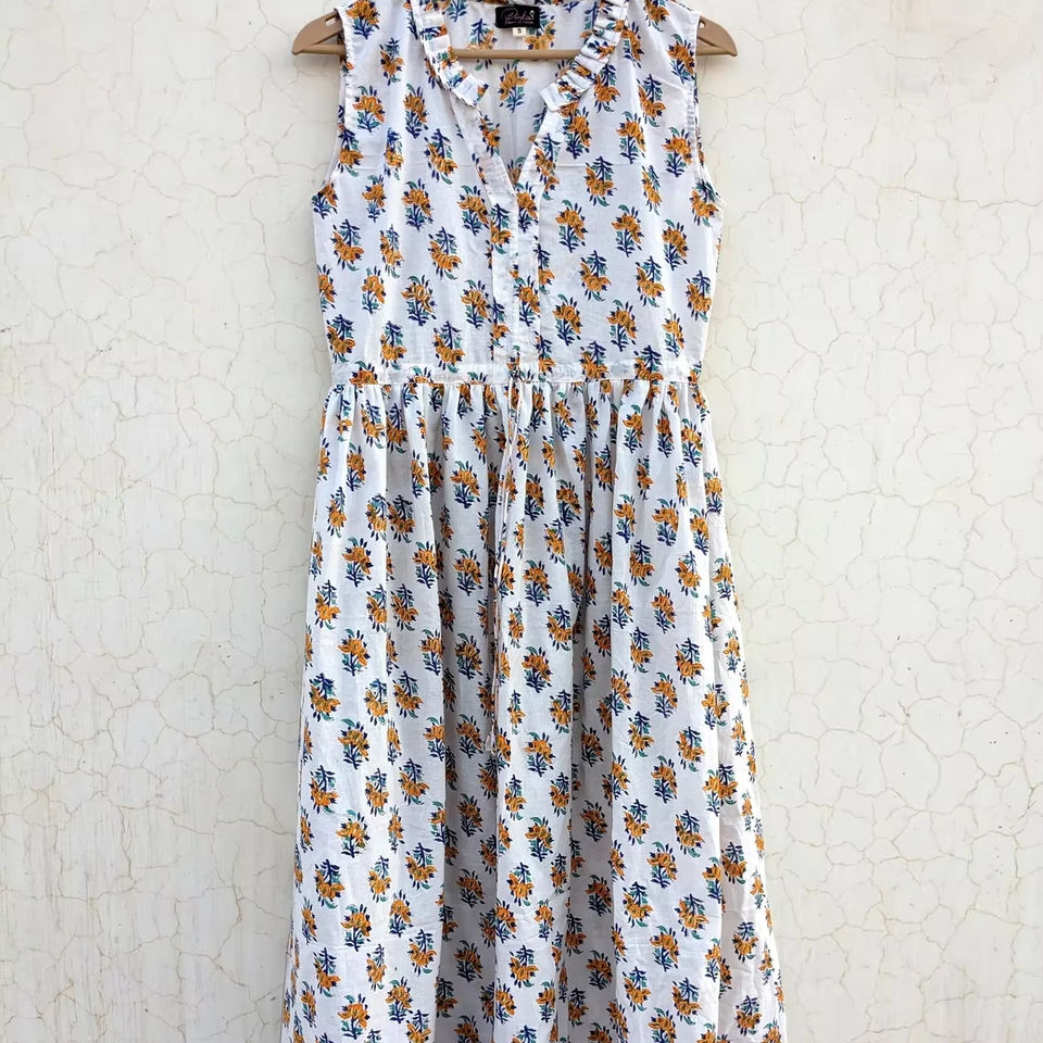 เดรสฤดูร้อนแขนกุดพิมพ์ลายบล็อก | เดรสผ้าฝ้าย | พิมพ์ลายดอกไม้ | ทำด้วยมือ