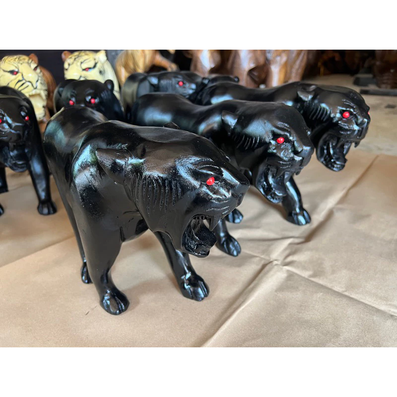 รูปปั้นเสือไม้สีดำแกะสลักด้วยมือคู่ประติมากรรมตกแต่ง