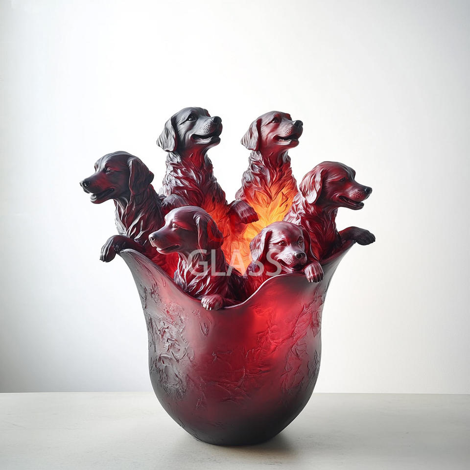 แจกันแก้วคริสตัลมือแกะสลักสไตล์สุนัขสำหรับงานแต่งงานและบาร์ Mitzvah โต๊ะของตกแต่งบ้าน