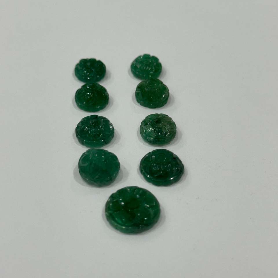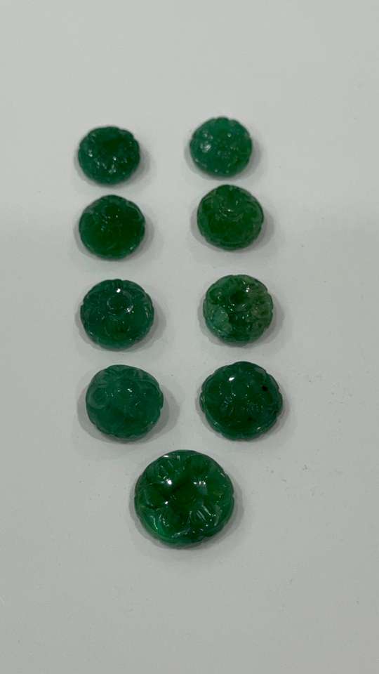พลอยมรกตแกะสลักด้วยมือรูปทรงกลมหลวมแกะสลักดอกไม้มรกตธรรมชาติ