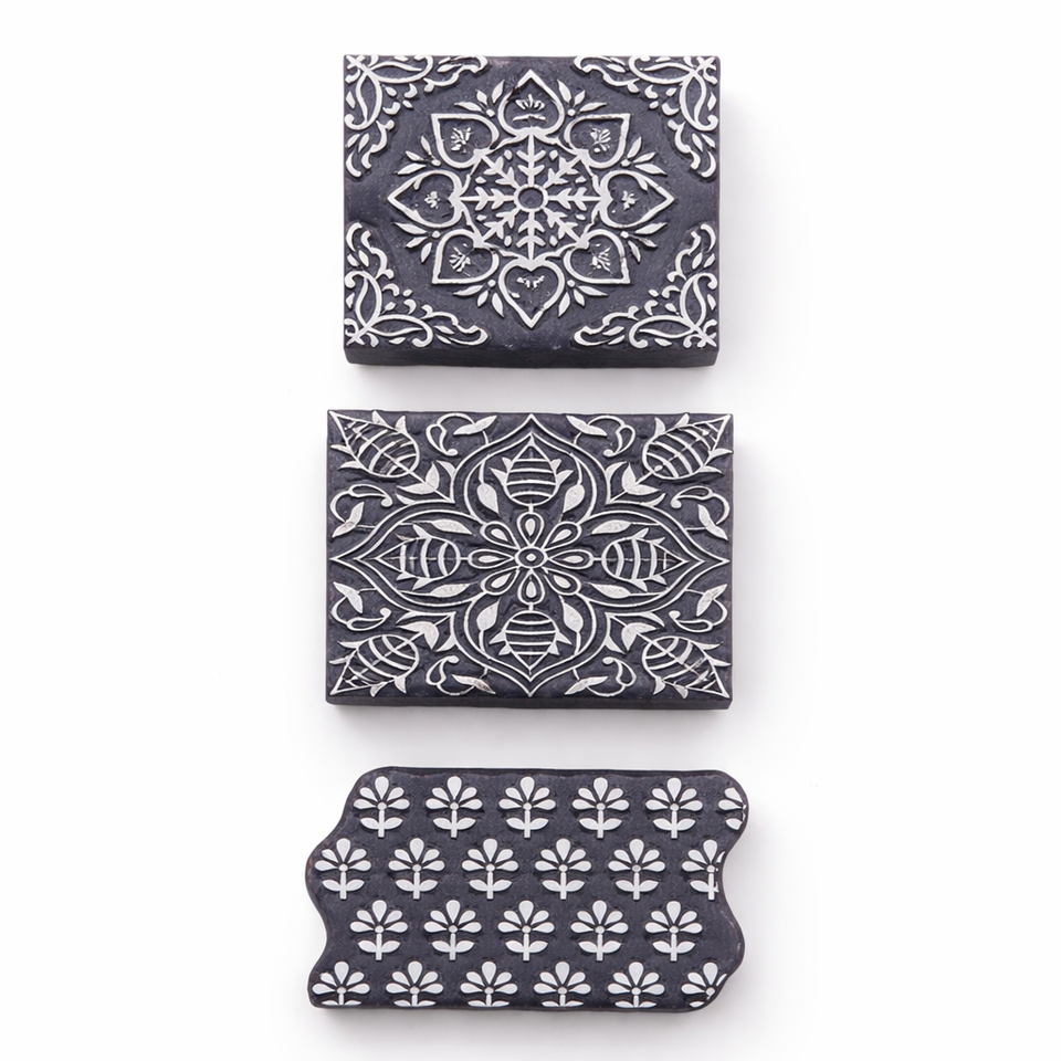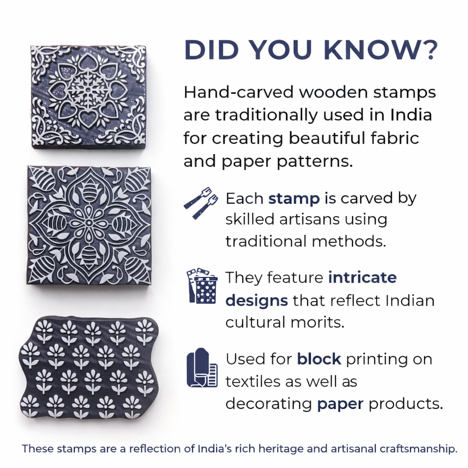 บล็อกไม้แกะสลักลายดอกไม้แบบอินเดีย สำหรับพิมพ์ผ้า ทำเฮนน่า งานฝีมือ DIY ใช้ซ้ำได้