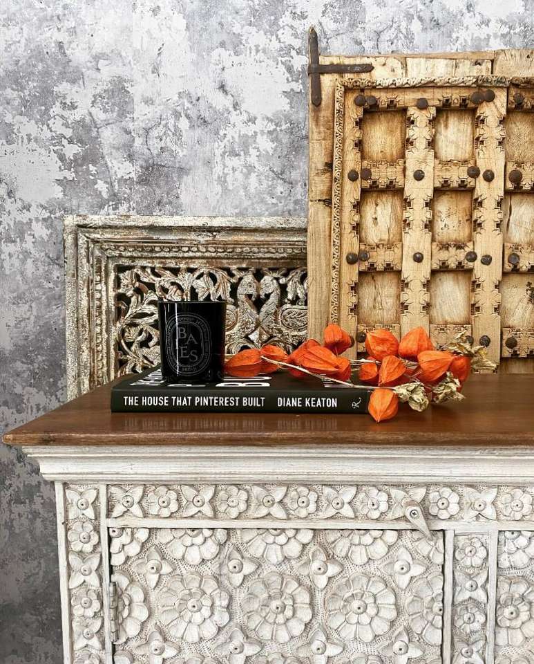 ตู้ไม้มะม่วงสีขาวดีไซน์ลายดอกไม้แกะสลักด้วยมือ
