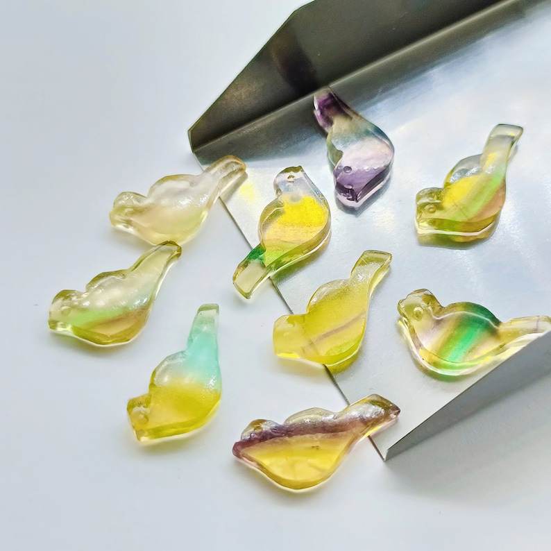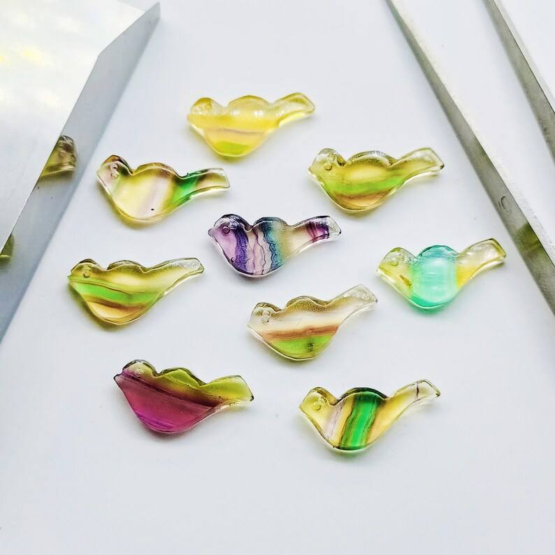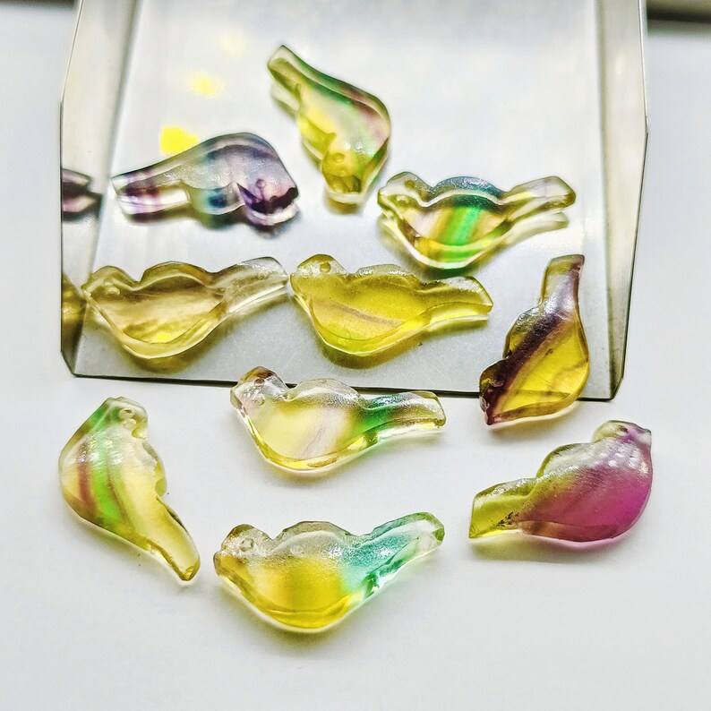 ลูกปัดพลอยฟลูออไรต์รูปนกแกะสลักด้วยมือ ขนาด 20x8 มม. สำหรับทำเครื่องประดับ