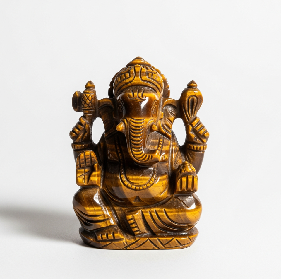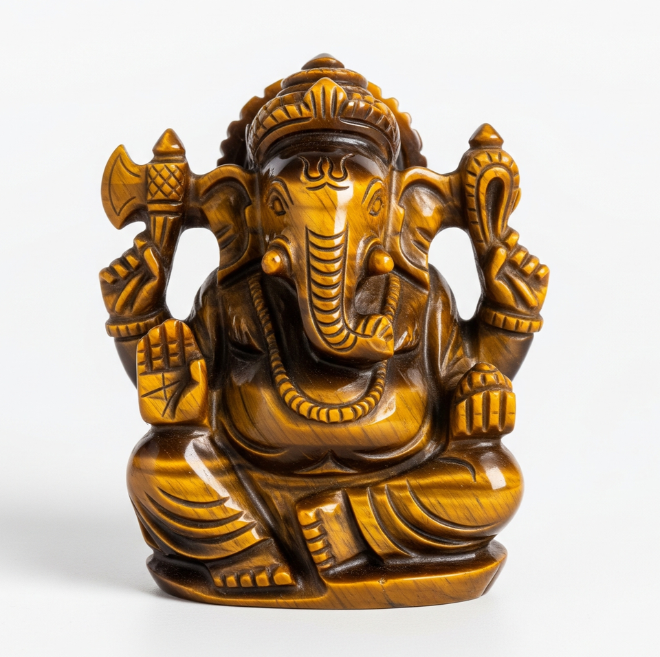 รูปปั้นพระพิฆเนศแกะสลักด้วยมือของขวัญทางธุรกิจพร้อมรูปตาเสือหัตถกรรมอัญมณีกึ่งมีค่าแกะสลักทำในอินเดีย