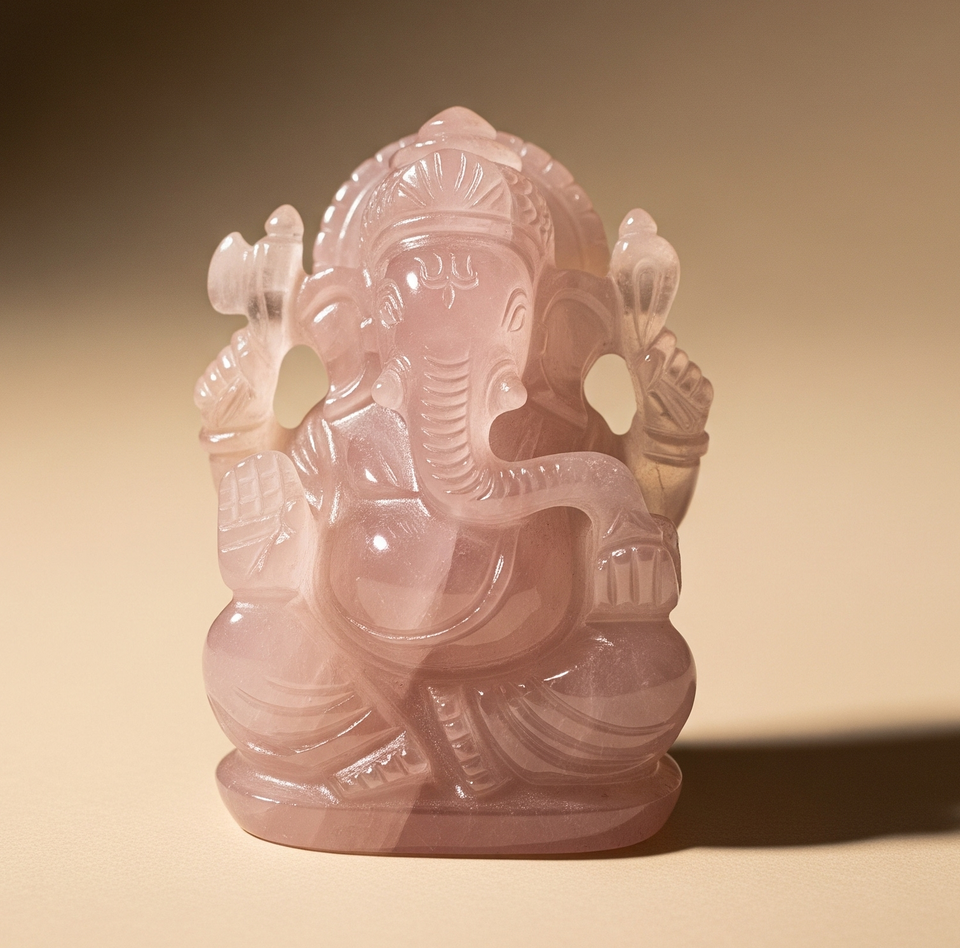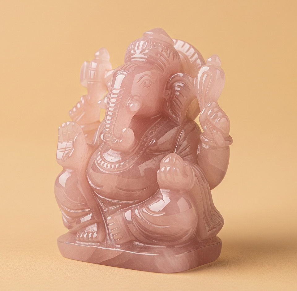 รูปปั้นพระพิฆเนศแกะสลักด้วยมือของขวัญทางธุรกิจด้วยคริสตัลควอตซ์กุหลาบคริสตัลรักษาแบบกึ่งมีค่าของอินเดียแกะสลักงานฝีมือ