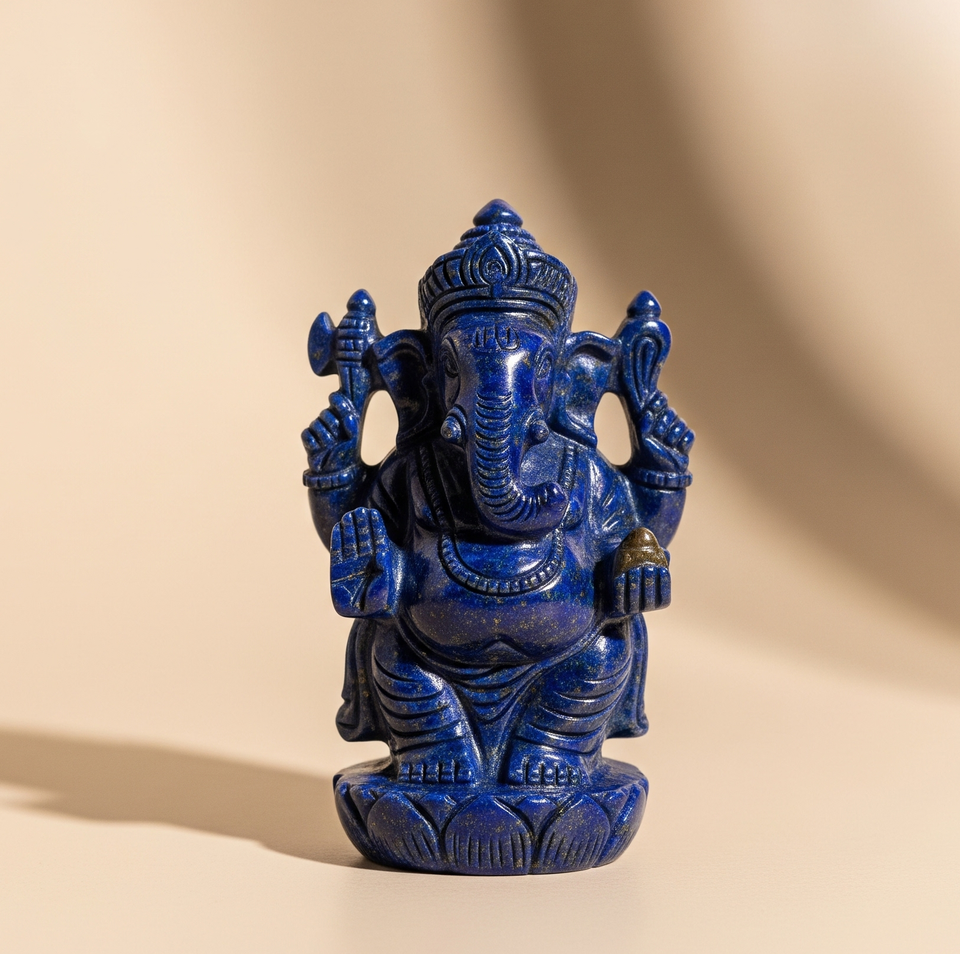 รูปปั้นพระพิฆเนศแกะสลักด้วยมือรูปปั้นหัตถกรรมอินเดียแกะสลักของขวัญธุรกิจ Lapis Lazuli กึ่งมีค่าพลอยหินคริสตัลรักษา