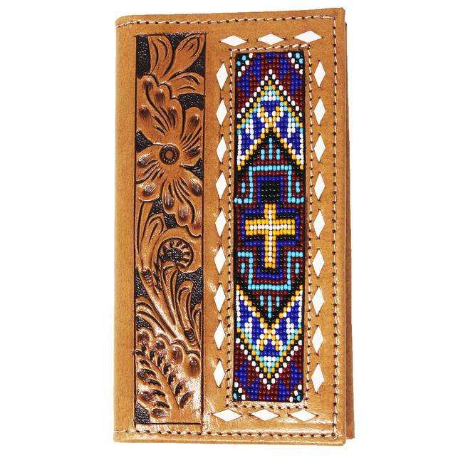 กระเป๋าสตางค์หนังแท้แกะสลักด้วยมือ พร้อมตัวล็อคแบบกระดุม ดีไซน์ลูกปัดสีแทนวินเทจ ป้องกัน RFID สไตล์โบฮีเมียน สำหรับทุกเพศ ขนาด 8x4x2 นิ้ว