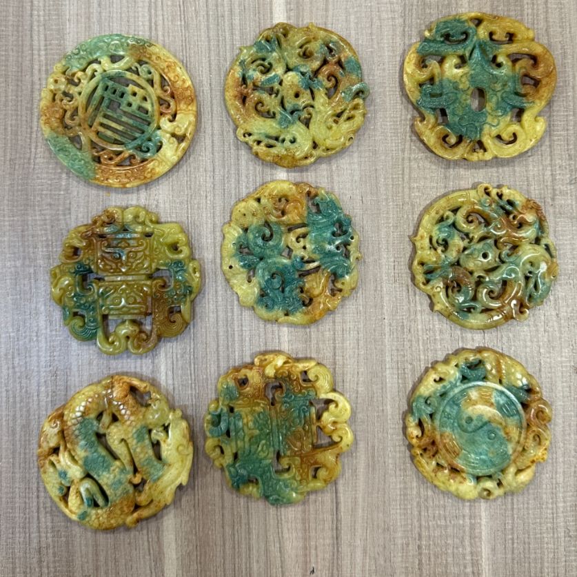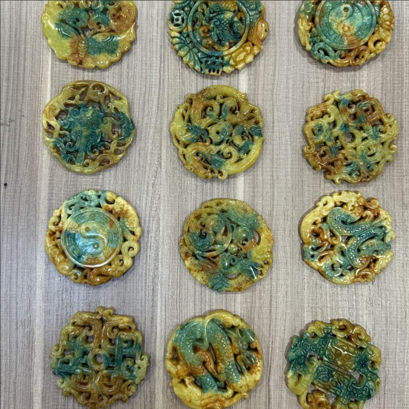 จี้หยกแกะสลักด้วยมือขนาดใหญ่พร้อมโทเท็มจีนโบราณเครื่องประดับอัญมณีแนวจิตวิญญาณจากหินธรรมชาติ