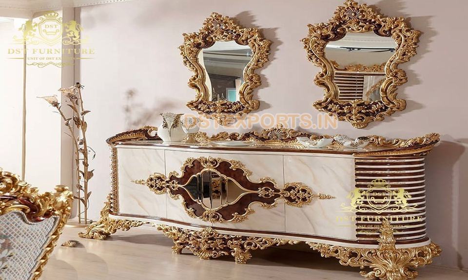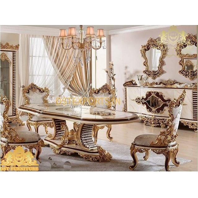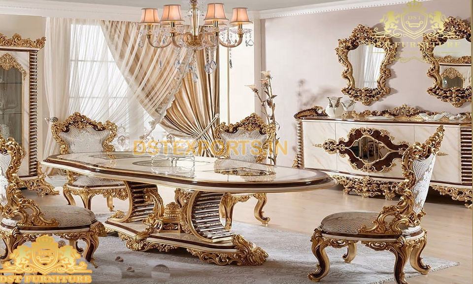 ชุดโต๊ะรับประทานอาหารไม้แกะสลักด้วยมือสุดหรูหรา สีทองอร่าม แบบสั่งทำพิเศษ สไตล์โมเดิร์น ผลิตในสหรัฐอเมริกาและสวิตเซอร์แลนด์