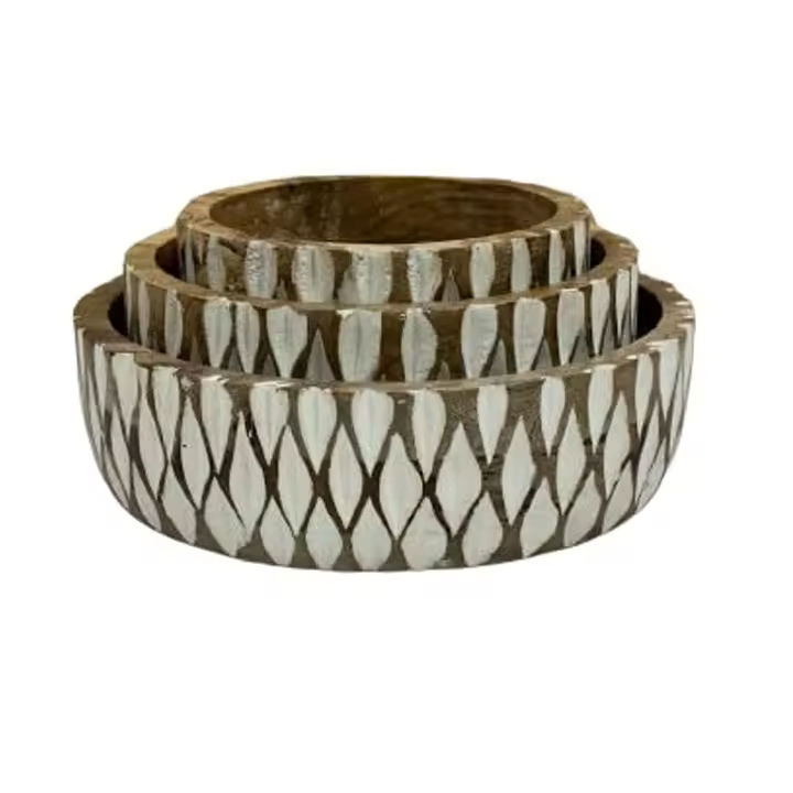 ชุดชามไม้โบราณทำจากไม้มะม่วงแกะสลักด้วยมือชุดละ3ชิ้นสำหรับสลัดชิปและของตกแต่ง