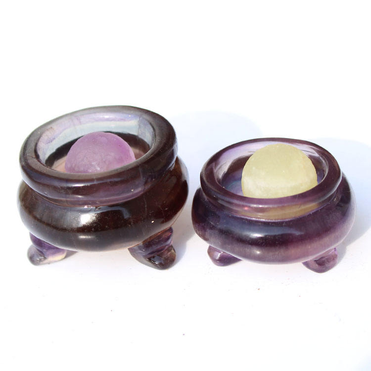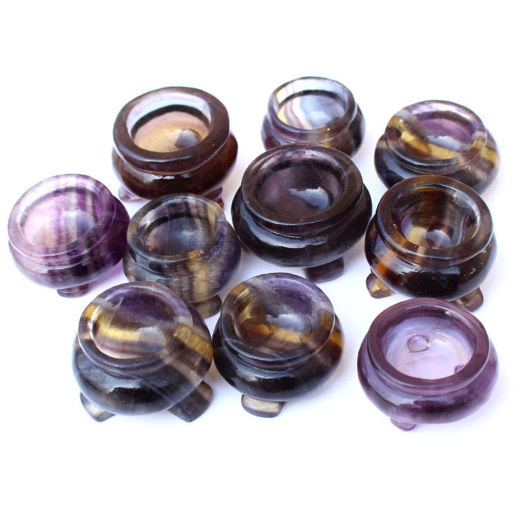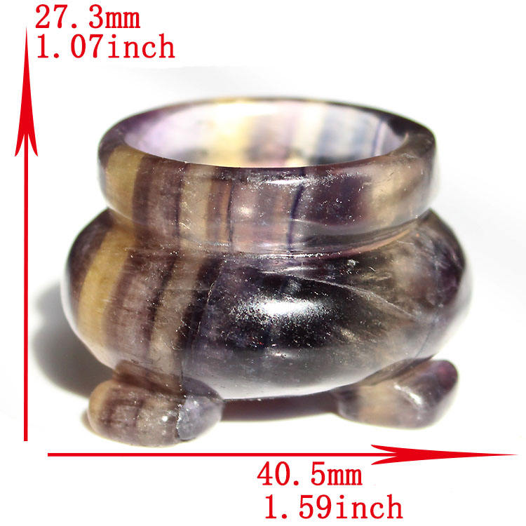 Name:Hand Carved Mini Size Natural Fluorite Quartz Crystal Witch Cauldron