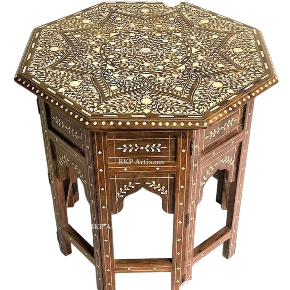 โต๊ะข้างไม้แกะสลักสไตล์โมร็อกโก โต๊ะไม้สำหรับวางของตกแต่งห้องนั่งเล่น เฟอร์นิเจอร์สไตล์วินเทจแบบตะวันออก ของตกแต่งบ้าน