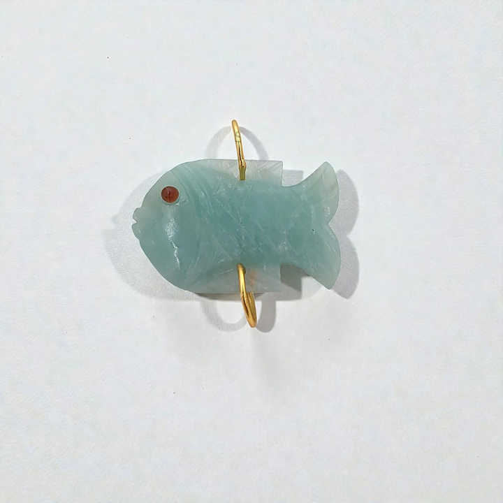 จี้ปลาทำจากอเมซอนไนต์ธรรมชาติแกะสลักด้วยมือ ชุบทอง สไตล์ศาสนา พร้อมห่วงสำหรับทำเครื่องประดับหรือตกแต่ง